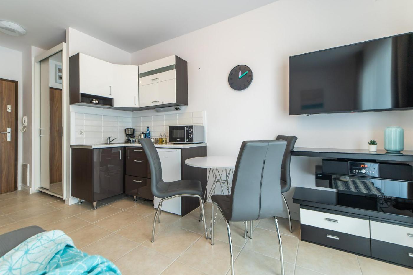 Apartament z balkonem – Flamingo Grey. Featuring a private entrance, this apartment consists of a kitchenette, 1 bedroom and 1 bathroom with a walk-in shower and a hairdryer. In the well-equipped kitchenette, guests will find a stovetop, a refrigerator, kitchenware and an oven. Boasting a balcony with ancourtyard view, this apartment also provides soundproof walls and a flat-screen TV. The unit offers 1 bed. Apartament - 4 osobowy. Powierzchnia pokoju ok.: 25 mkw. ;